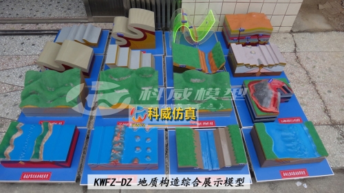 | KWDZ-71 | 背斜和向斜在平面上和剖面上的表示(水平褶皺) | 規(guī)格400×280×500,(規(guī)格單位為毫米)。彩色有機玻璃造型;有機玻璃成型,斷面分色,文字標(biāo)注。 | 件 | 1 |